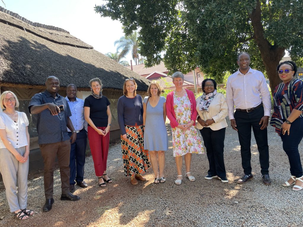 Photo: members of the project stakeholder group meeting at The Health Research Unit Zimbabwe in Harare. Left to right: Dr Alexandra Burton, Simbarashe Goneso, Daniel Mukonto, Alexandra Bradbury, Prof. Celia Gregson, Dr Carol Pascoe, Sharon Beffa, Kudzai Mpunzwana, Marck Chikanza and Maureen Tshuma. Organisations: Queen Mary University of London, Society of Destitute Aged, National Age Network of Zimbabwe, University College London, University of Bristol, Westreign Home, Zimbabwe Alzheimer’s and Related Disorders Association, and The Health Research Unit Zimbabwe.